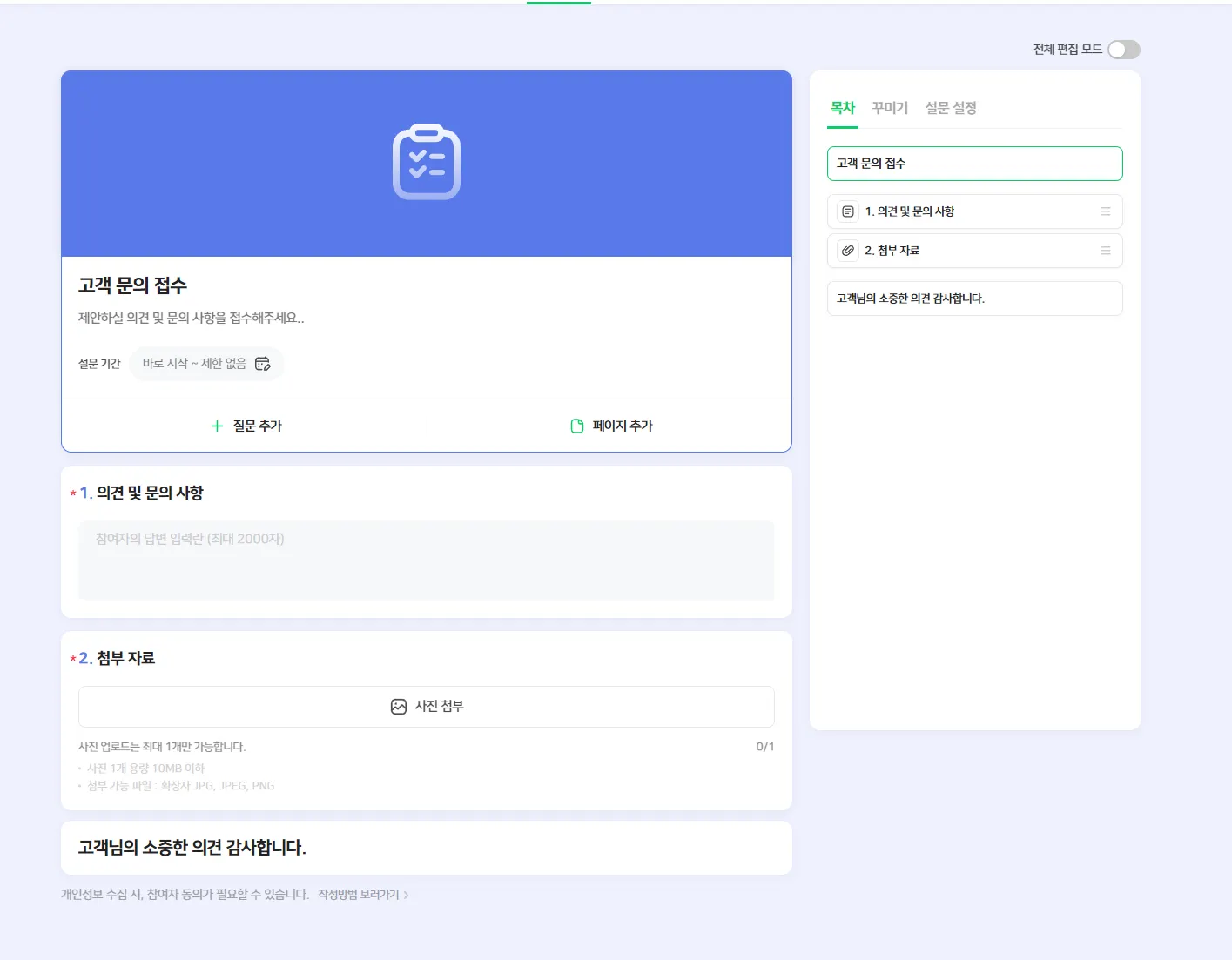 설문 시간에 대해서도 '즉시 시작' 과 '기간 설정' 옵션을 따로 제공하고 있습니다