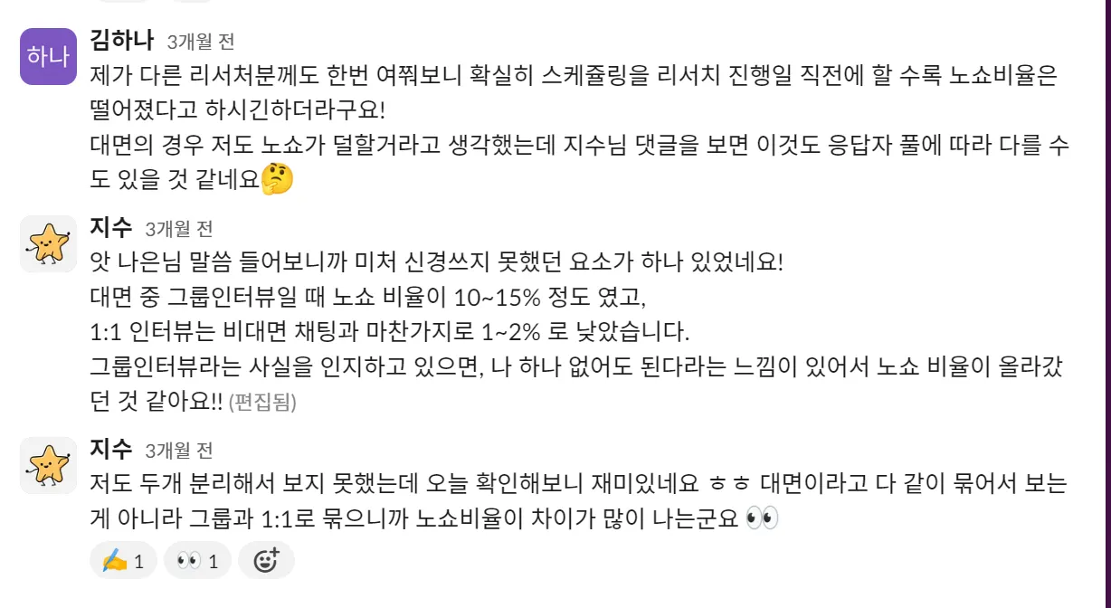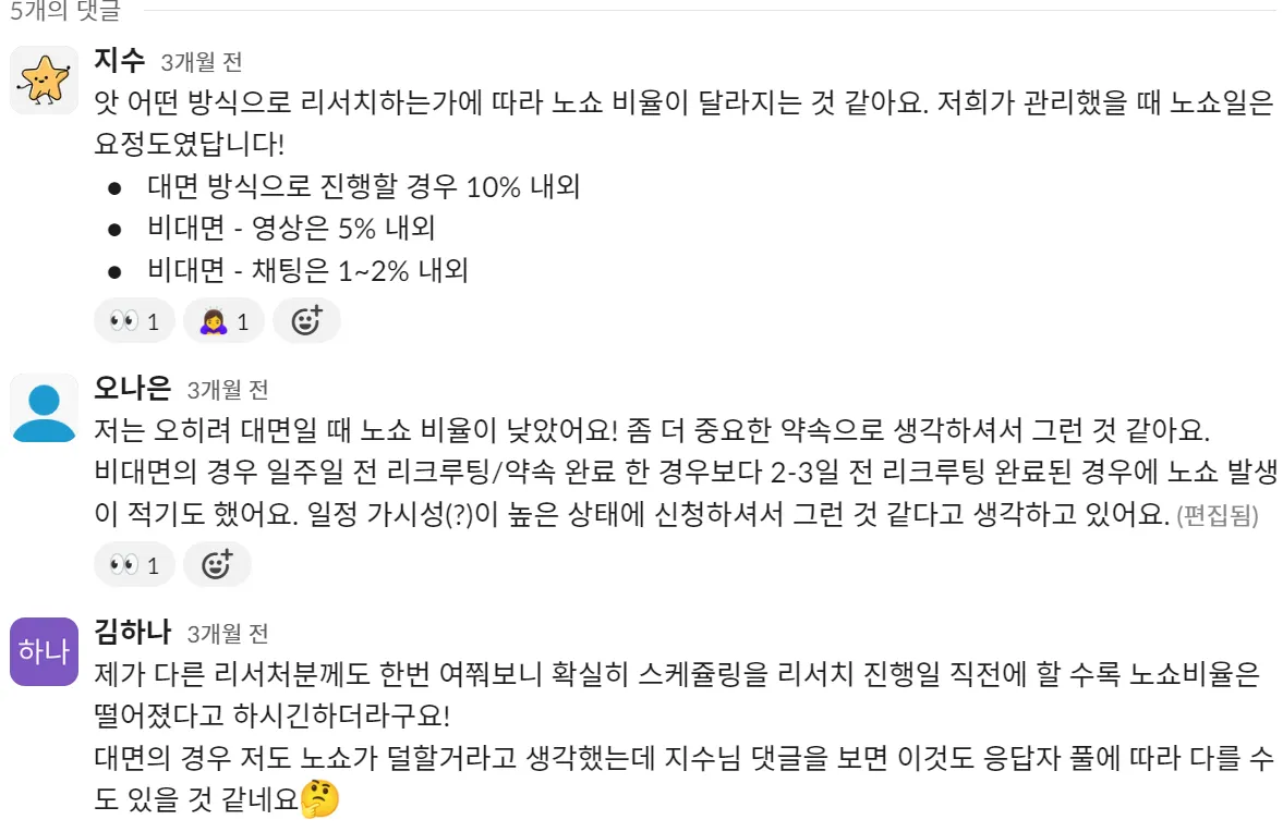 최근 고객분들 대상으로 인터뷰나 UT를 진행하면서 리서치 참여자의 노쇼를 줄일 수 있는 방법들을 생각 중입니다.